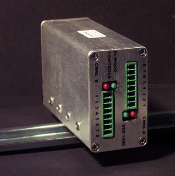 Subsea Lighting Dimmer The SSD-1000 is a 2 channel, 500 watt per channel, 120Vac dimmer designed and built for subsea applications. This dimmer was engineered for maximum reliability and to withstand subsea pressures. It includes mosfet power stages, microprocessor control, overload and short circuit protection. Lighting level is controlled using a 0-10vdc input and control power is 12 to 24vdc. All power and signal circuits are electrically isolated. The SSD-1000 can operate in three modes 1) Halogen dimming 2) ROS Q-LEDIII (LED) dimming mode 3) HID on/off switch mode. This allows you to use our SSD-1000 to cover all of you lighting control needs. Price $845 Call or email to order |